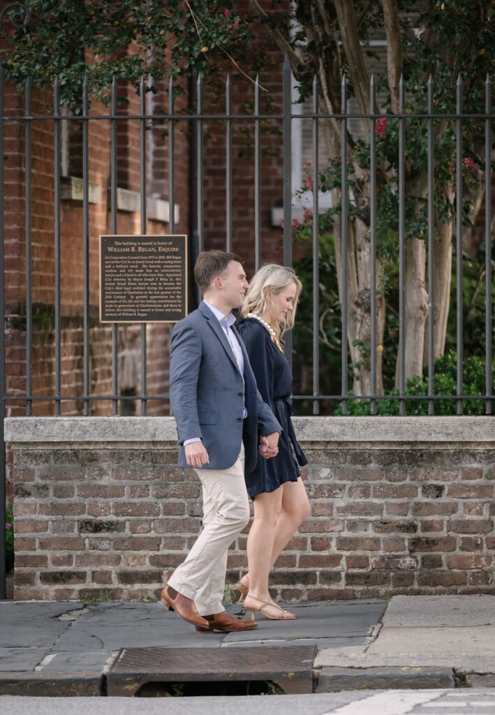 With the proposal lived, we moved through Charleston together — alleys, historic streets, architecture always in view. Each turn offered something we could pause at: old walls with character, iron gates, softly weathered facades.