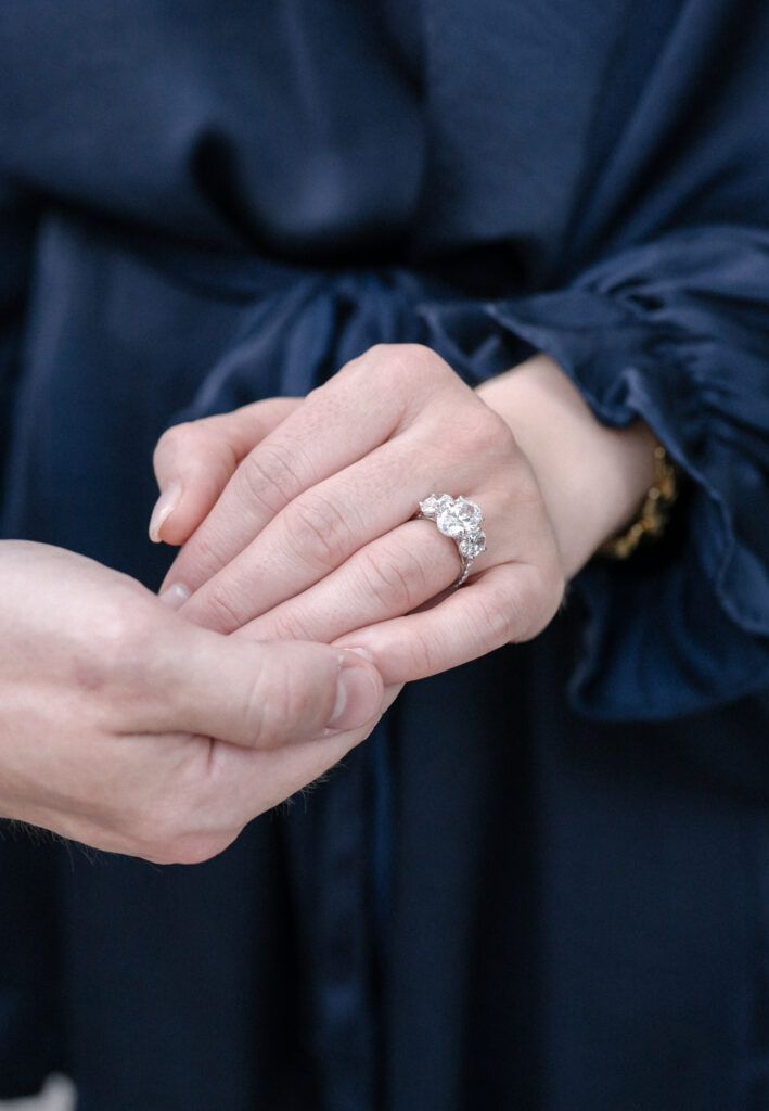 Morgan’s breathtaking three-diamond engagement ring sparkled throughout the night, a timeless symbol of their love. It was beautiful, meaningful, something she could hold onto not just with fingers but in heart. As a symbol, it fit — capturing where they came from and where they’re going.