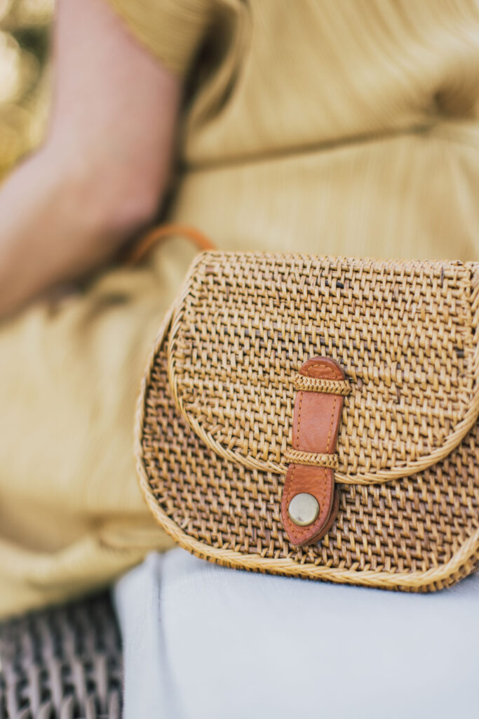This particular setup is a lesson in effortless elegance. With a palette of fresh white and sunny yellow, woven textures, breezy fabrics, and playful details like heart-shaped sunglasses, it strikes the perfect balance between laid-back and luxe.