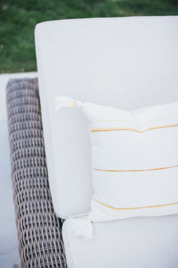 Start with the foundation: color. A white and yellow palette instantly communicates summer. It’s light, happy, and works beautifully with any outdoor setting. In this poolside setup, crisp white details keep things clean and minimal, while pops of yellow bring warmth and energy.
