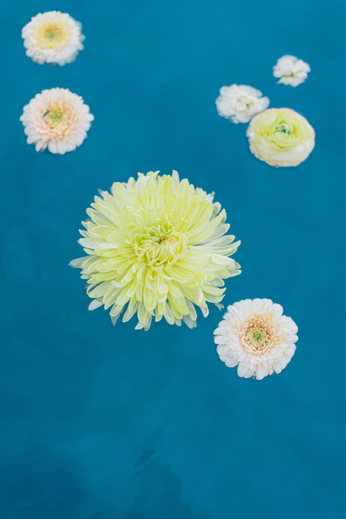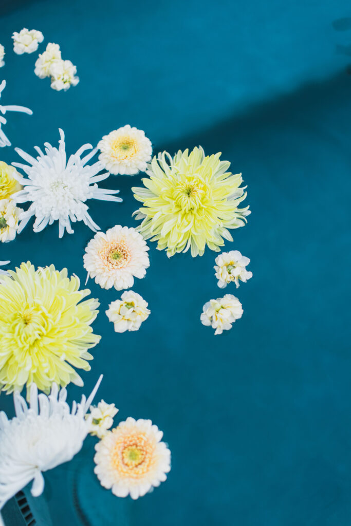 - Float florals in the pool for a dreamy, romantic contrast against the water.