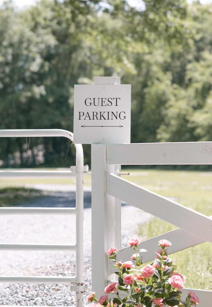 As you drive up to the The Wildberry Farm wedding venue, the first thing you notice is how peaceful and inviting it is. The main sign sits against soft landscaping, and the white gate decorated with colorful florals immediately makes the day feel intentional.