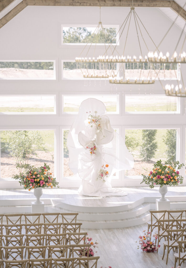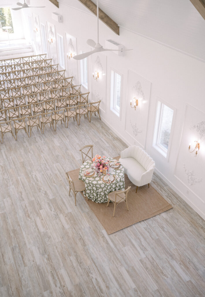 Inside, the main event space is full of natural light and thoughtful design. The large windows and neutral tones allow every couple to make the space their own without needing to bring in heavy decor.